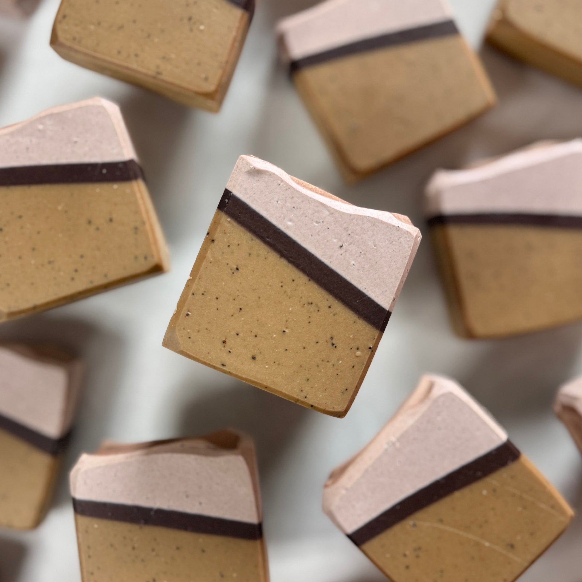 Each palm-free bar is made with our nourishing blend of olive oil, coconut oil, and cocoa butter, giving your skin a gentle cleanse while ground coffee beans add natural exfoliation. Your skin feels will feel refreshed and nourished with every scrubby lather.