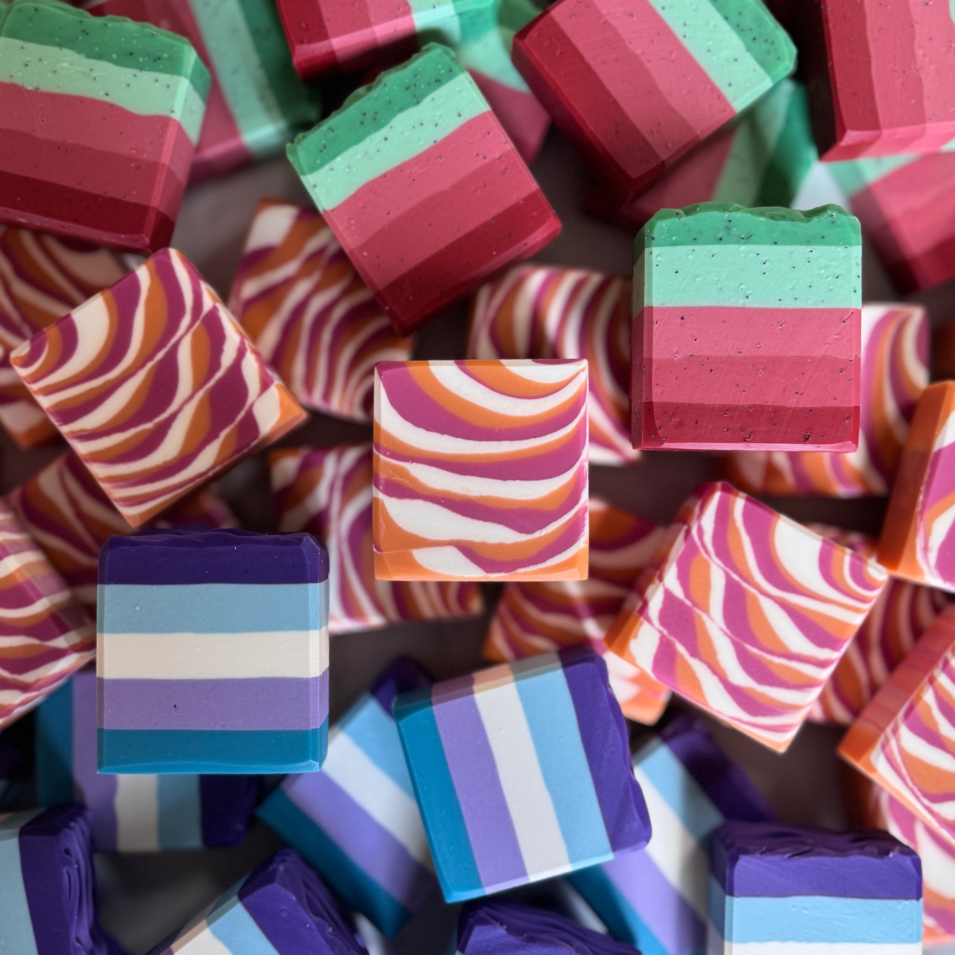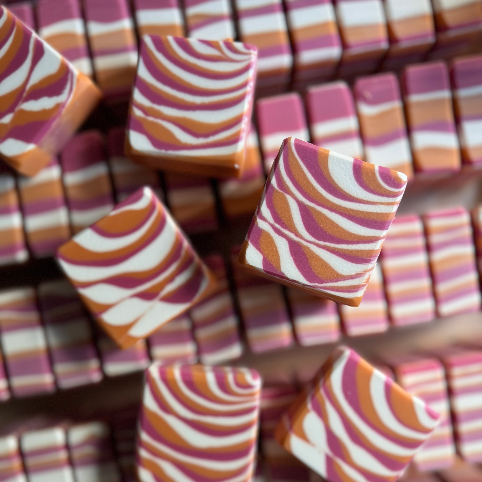 Brighten up your bath (and your self-care routine!) with Grapefruit Glow — a zesty splash of pink grapefruit wrapped in bold stripes of orange, pink, and white. This vibrant, handcrafted bar turns every wash into a mini escape, bringing a little sunshine wherever you go.