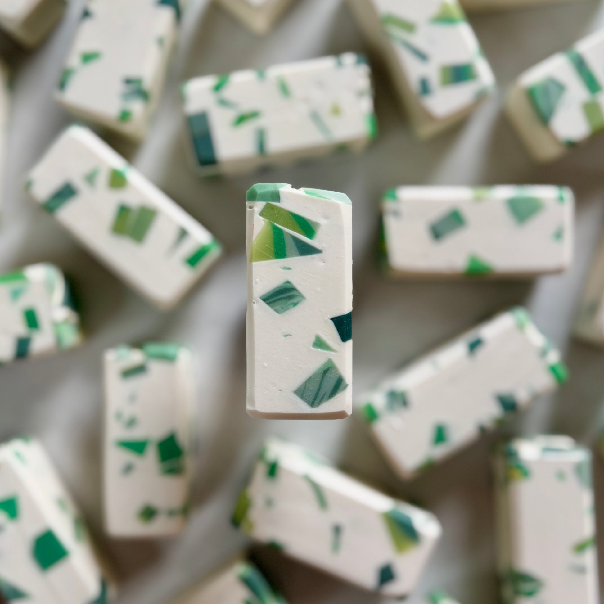 All the magic of winter in a perfectly petite package, Pine Mini is a handcrafted vegan soap that captures the crisp, cozy spirit of the season. Its creamy white base is sprinkled with chopped green soap confetti, a playful nod to snow-dusted evergreens.