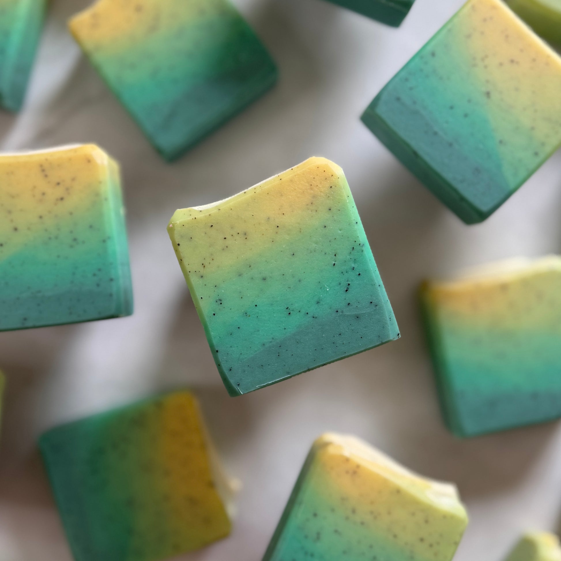 This handcrafted soap is as much a visual masterpiece as it is a fragrant one. The flawless green and yellow gradient, poured and layered with care, makes Vetiver an elegant centerpiece for your daily routine.